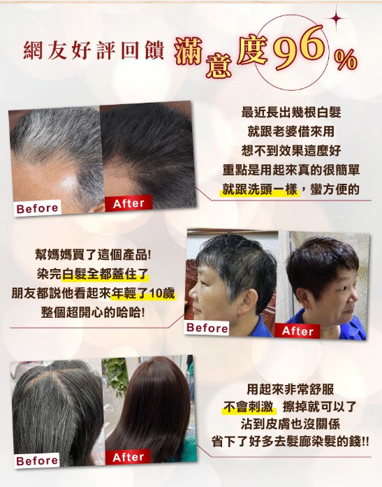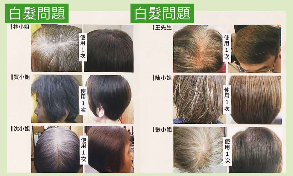 無論男女老少、白髮多少,不管你是少白頭,還是雙鬢斑白,只要輕鬆一洗就變自然健康的黑色!