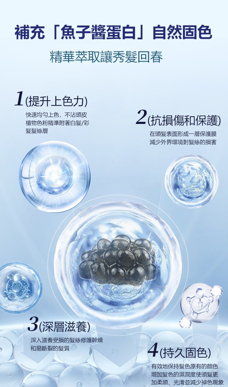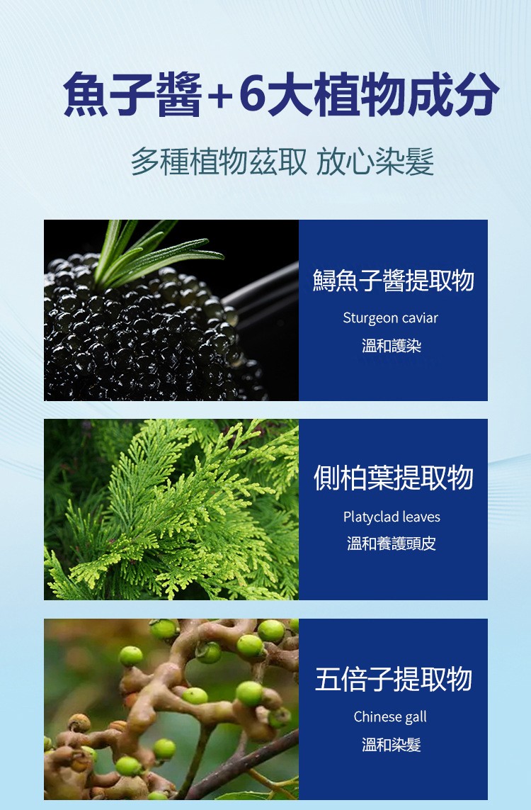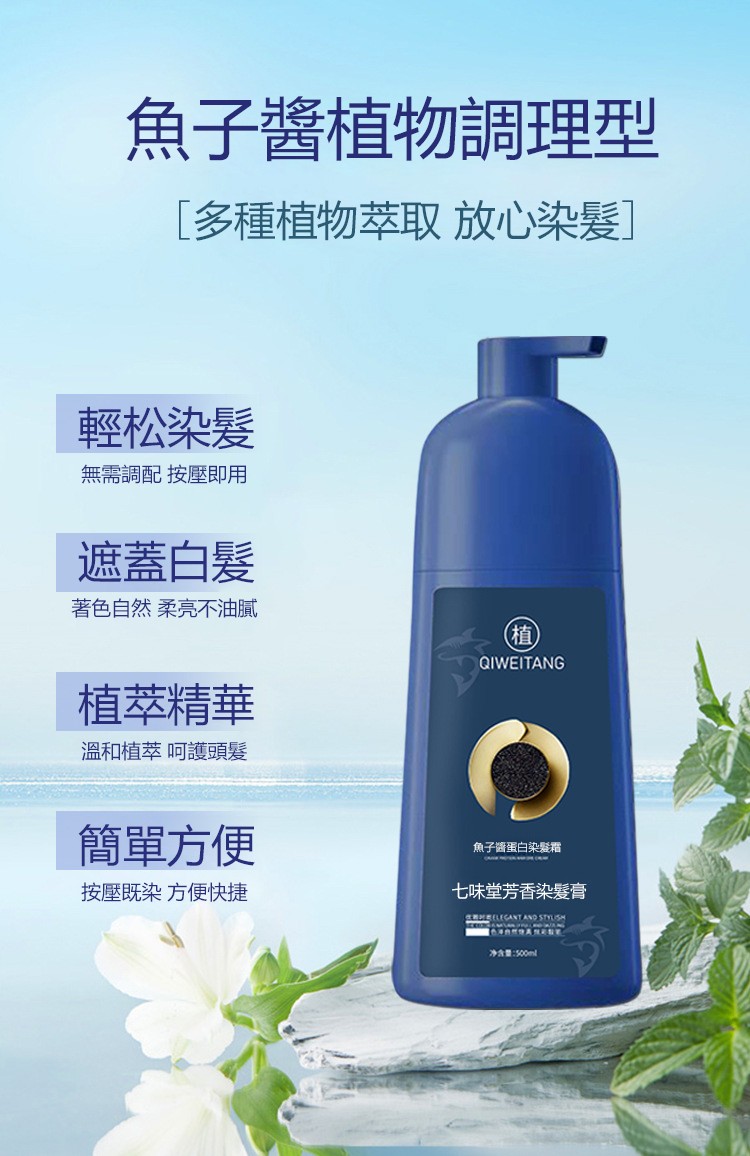 中藥七味堂芳香泡泡染髮霜採用野生魚子醬+天然植萃製作,沒有任何化學成分