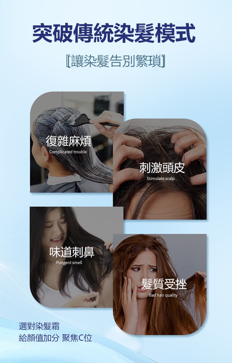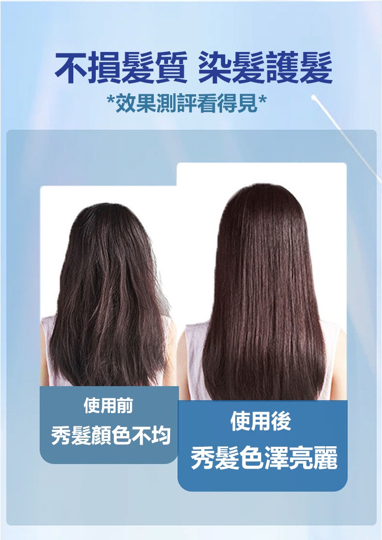 上色方便迅速,溫和不刺激,完全不會傷害頭皮,重點是真正的是在染髮的時候養髮,頭髮真的有慢慢長出來!
