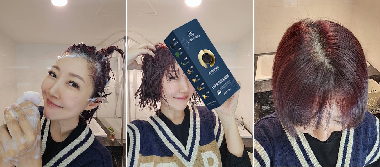 心湄姐每次染頭髮都是用的中藥七味堂芳香泡泡染髮霜,所以髮質才能保持的這麼好