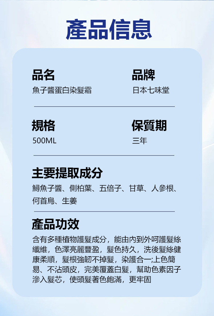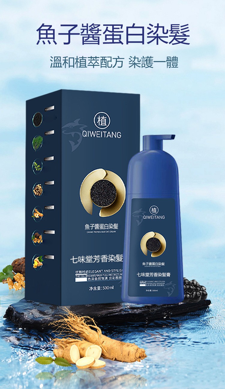 這款中藥七味堂芳香泡泡染髮霜膏採用的是魚子醬加上純草本的配方,溫和不刺激,染髮同時生髮